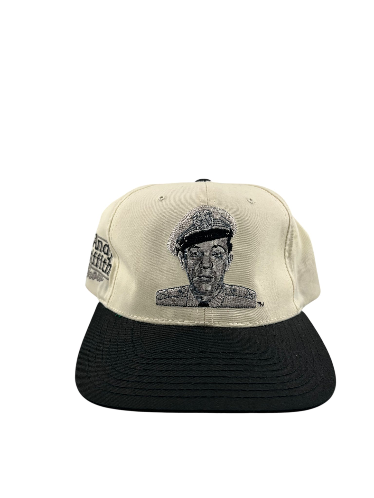 Vintage AMERICAN NEEDLE Barney Fife Andy Griffith Show Blockhead Snapback Hat 90s White Black